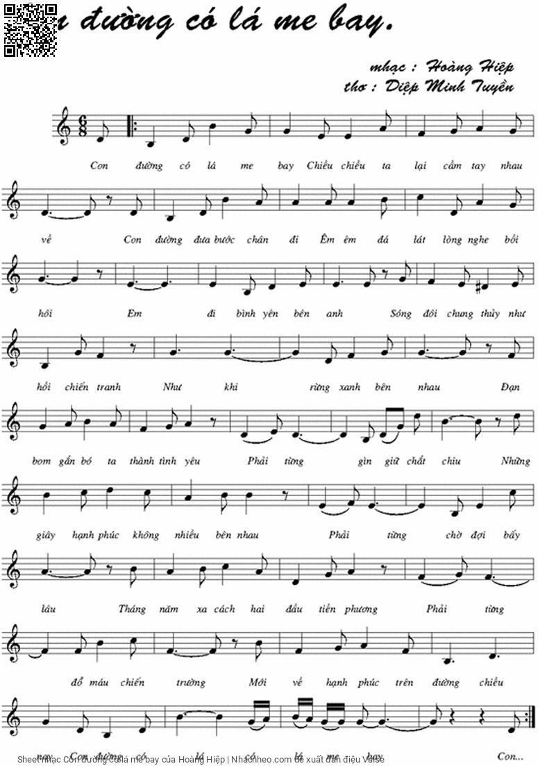 Hoàng Hiệp Con đường có lá me bay Chiều chiều ta lại cầm tay nhau về [PDF] [Sheet] [Lyrics] [Mp4/Midi]