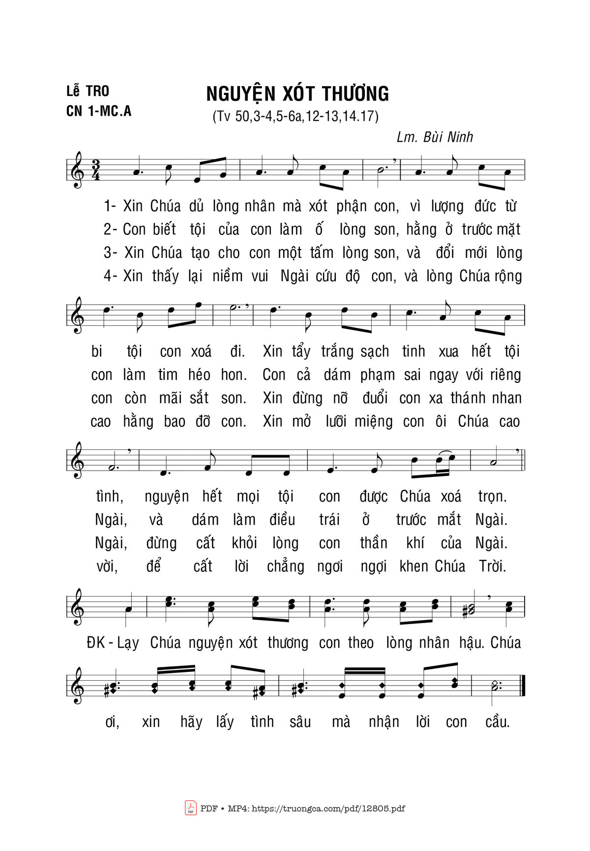 Bùi Ninh Xin Chúa dủ lòng nhân mà xót phận con vì lượng đức từ bi tội con xóa đi [PDF] [Sheet] [Lyrics] [Mp4/Midi]