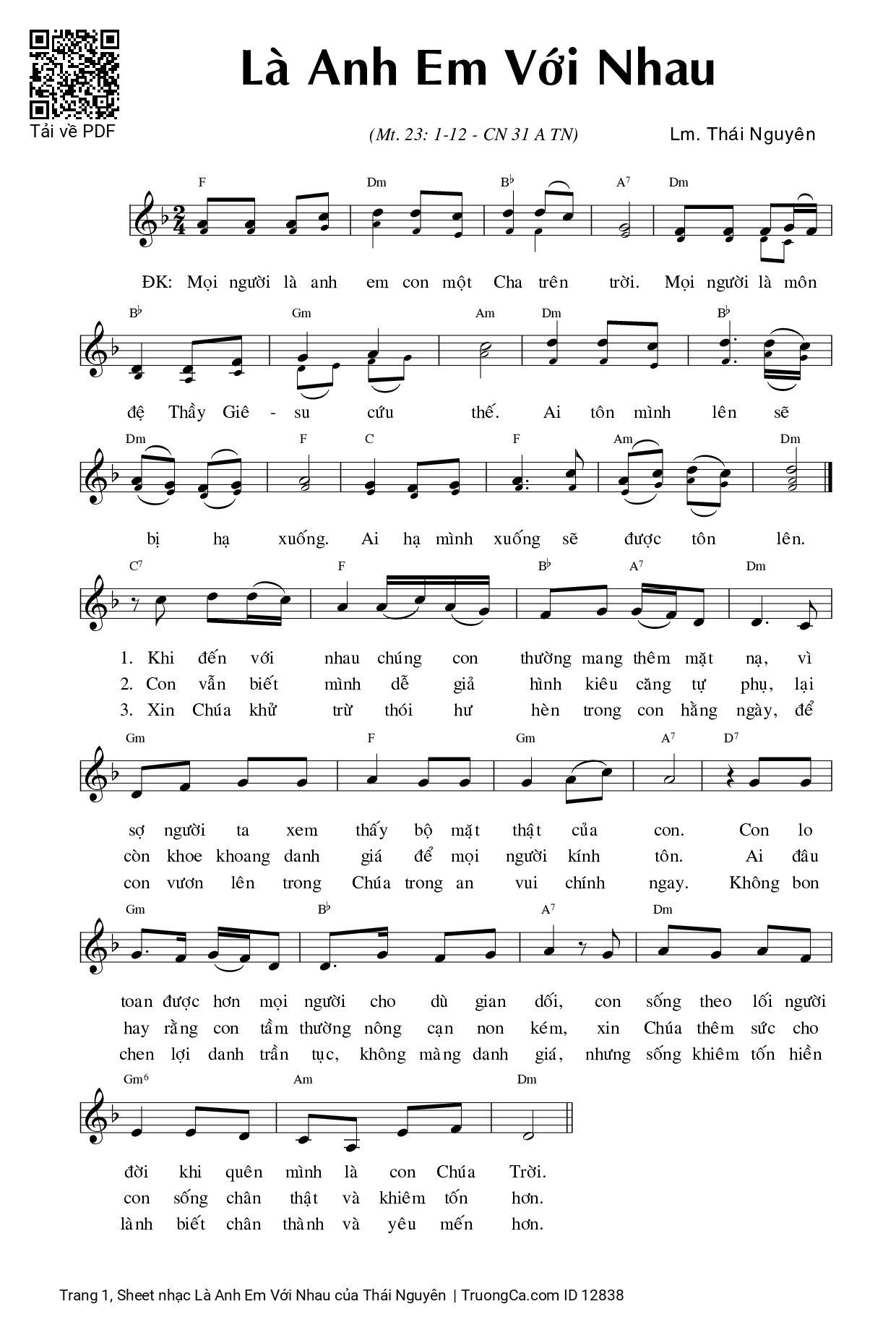 Thái Nguyên Mọi người là anh em con một Cha trên trời [PDF] [Sheet] [Lyrics] [Mp4/Midi]