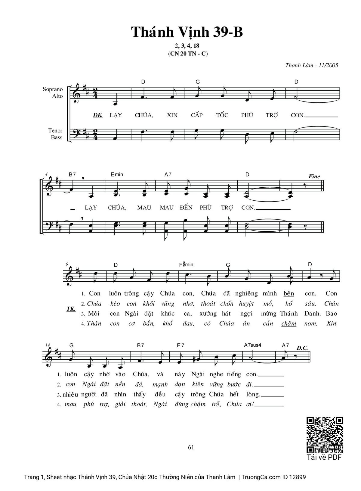 Thanh Lâm Lạy Chúa xin cấp tốc phù trợ con Lạy Chúa [PDF] [Sheet] [Lyrics] [Mp4/Midi]