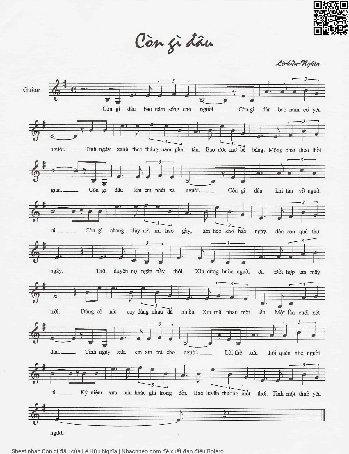 Lê Hữu Nghĩa Còn gì đâu bao năm sống cho người Còn gì đâu bao năm cố yêu người [PDF] [Sheet] [Lyrics] [Mp4/Midi]