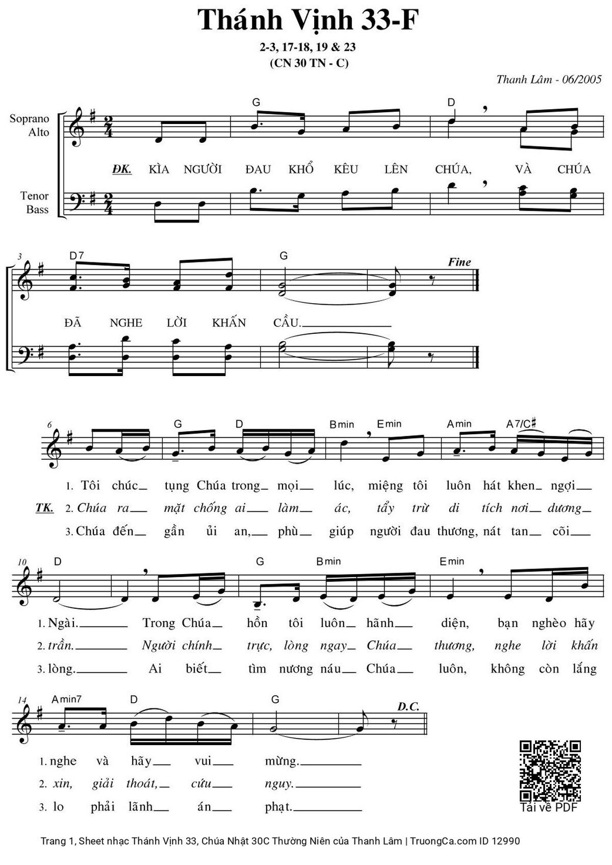 Sheet PDF with the same name Thánh Vịnh 33, Chúa Nhật 30c Thường Niên: