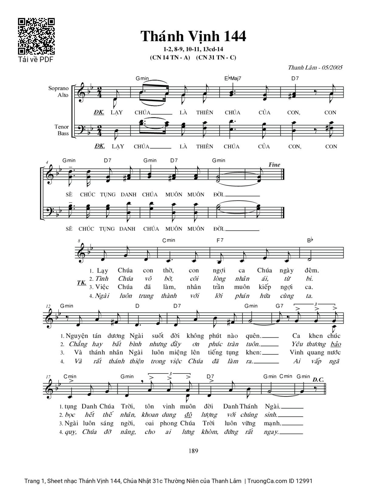 Category 🌾 Nhạc Thánh Ca, 🌾 Thánh Vịnh - Đáp Ca, 🌾 Thánh ca Imprimatur, 🌾 Thánh Vịnh 144