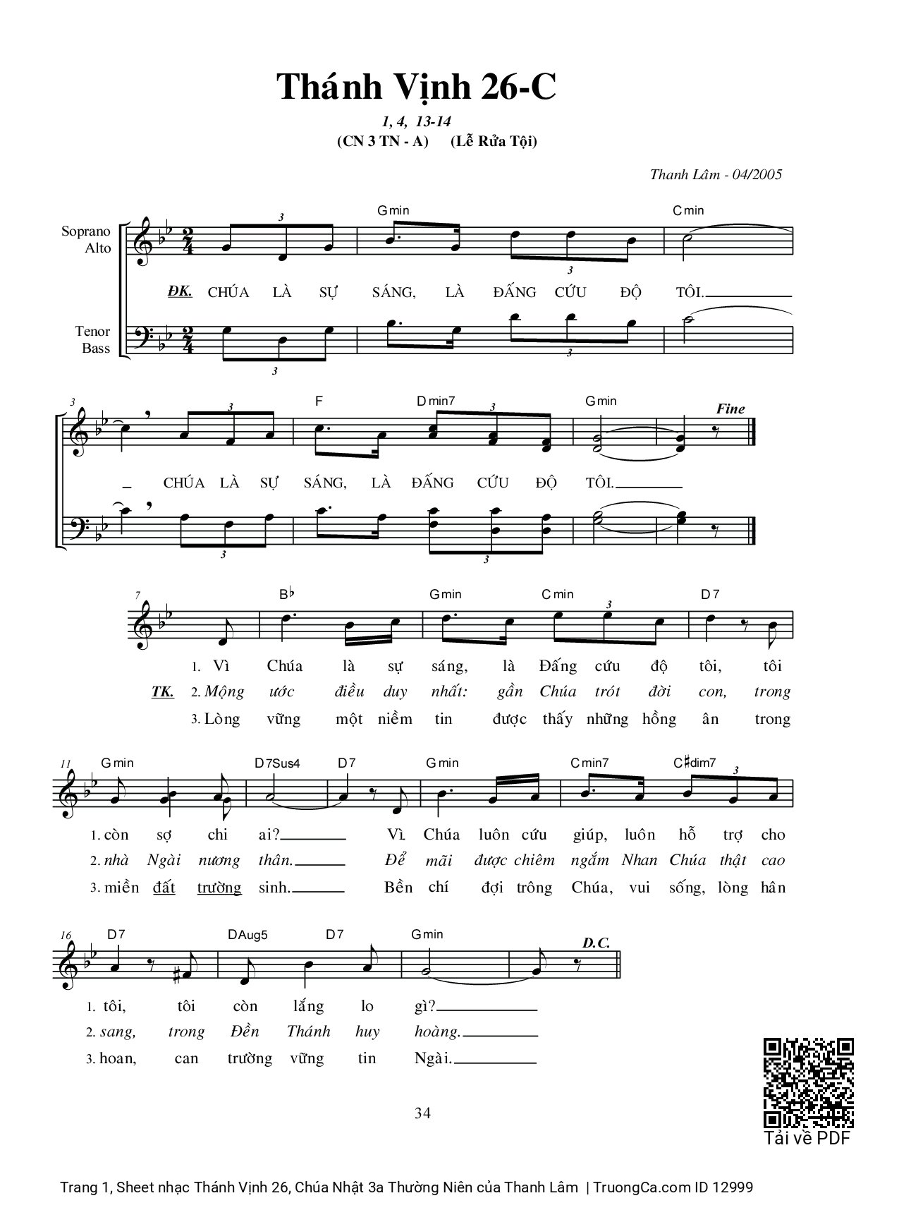 Thanh Lâm Chúa là sự sáng là Đấng cứu độ tôi [PDF] [Sheet] [Lyrics] [Mp4/Midi]