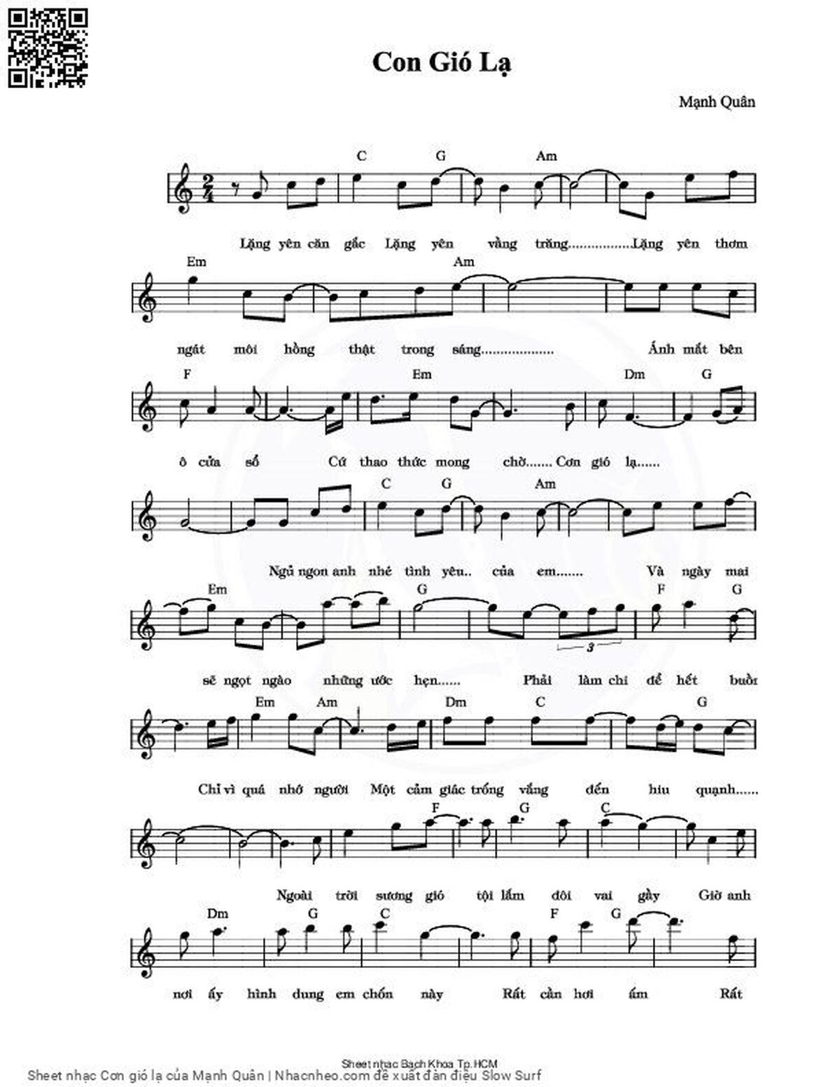 Transposition is the process of moving a song's melody and chords up or down in pitch by a constant interval. The direction of the transposition tool is indicated by a plus (+) sign for up and a minus (-) sign for down. Hover mouse over chords signs to see the chords chart of Cơn gió lạ song.
