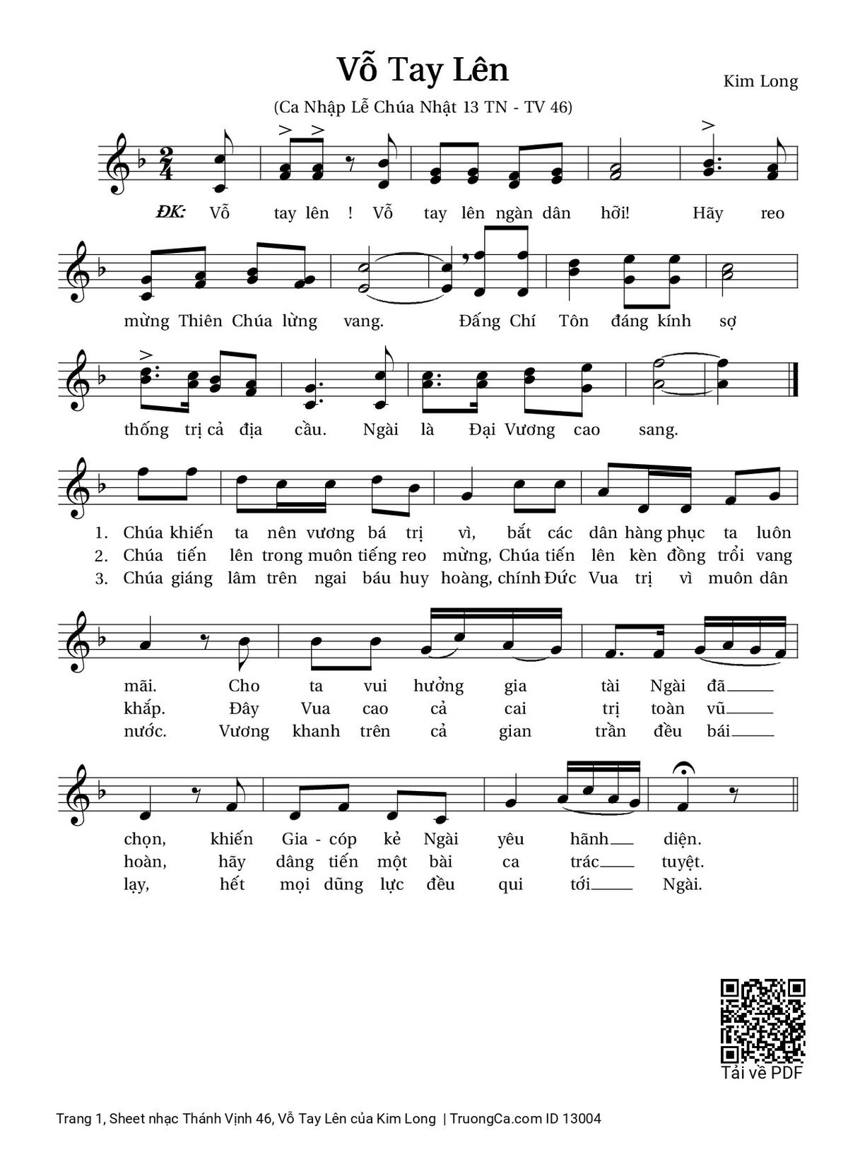 Kim Long Vỗ tay lên Vỗ tay lên ngàn dân hỡi Hãy reo mừng Thiên Chúa lừng vang [PDF] [Sheet] [Lyrics] [Mp4/Midi]