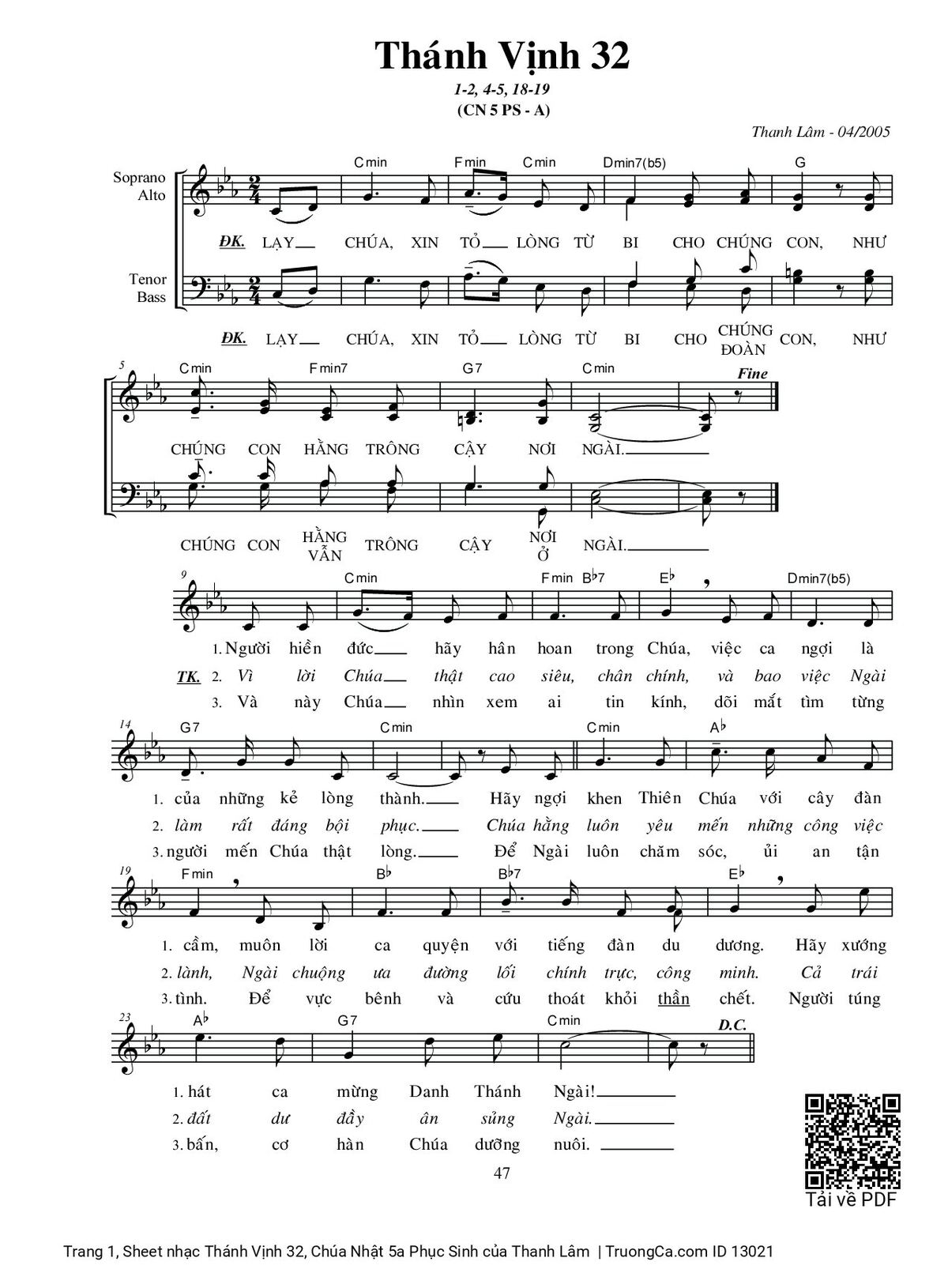 Sheet PDF with the same name Thánh Vịnh 32, Chúa Nhật 5a Phục Sinh: