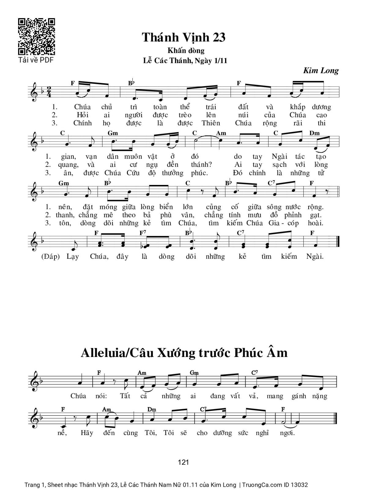 Sheet PDF with the same name Thánh Vịnh 23, Lễ Các Thánh Nam Nữ 01.11: