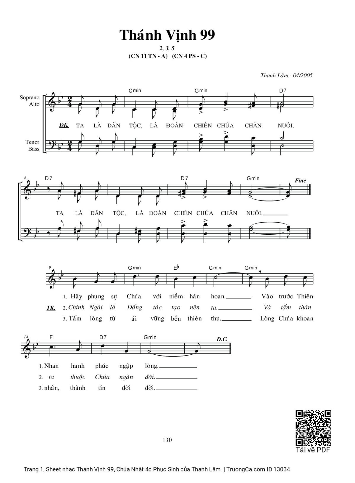 Sheet PDF with the same name Thánh Vịnh 99, Chúa Nhật 4c Phục Sinh:
