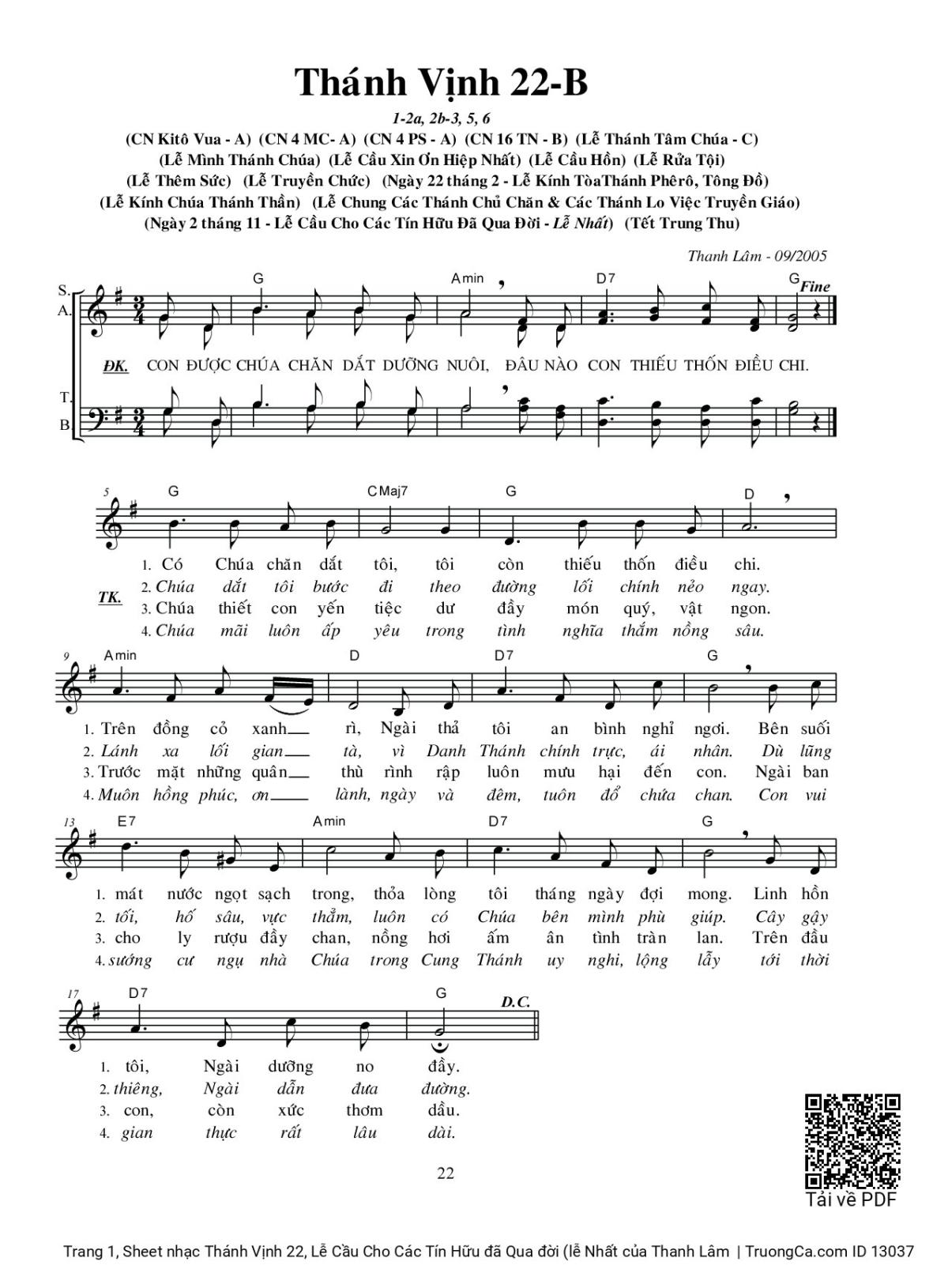 Thanh Lâm Con được Chúa chăn dắt dưỡng nuôi đâu nào con thiếu thốn điều chi [PDF] [Sheet] [Lyrics] [Mp4/Midi]