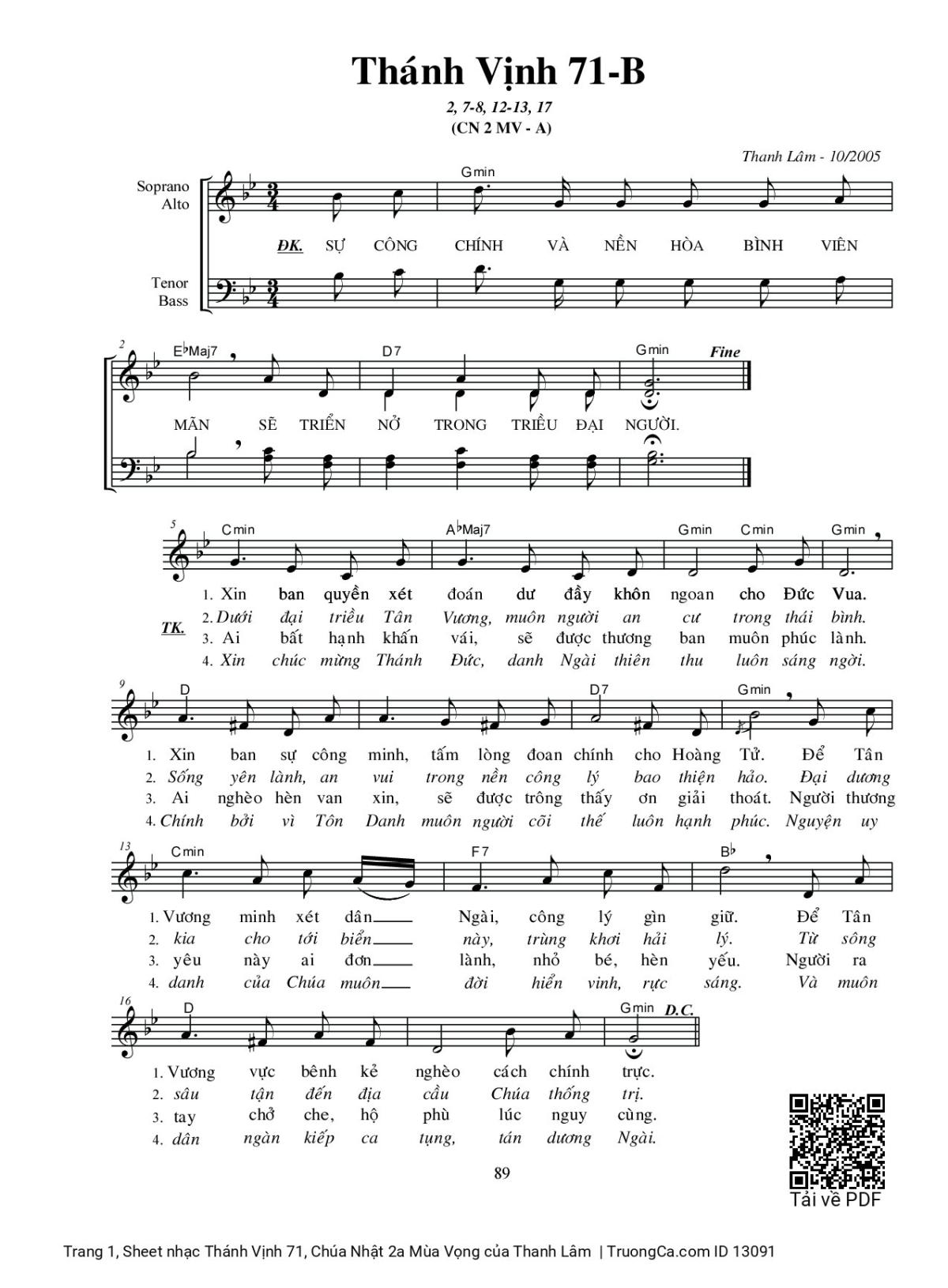 More similar sheets PDF Thánh Vịnh 71, Chúa Nhật 2a Mùa Vọng: