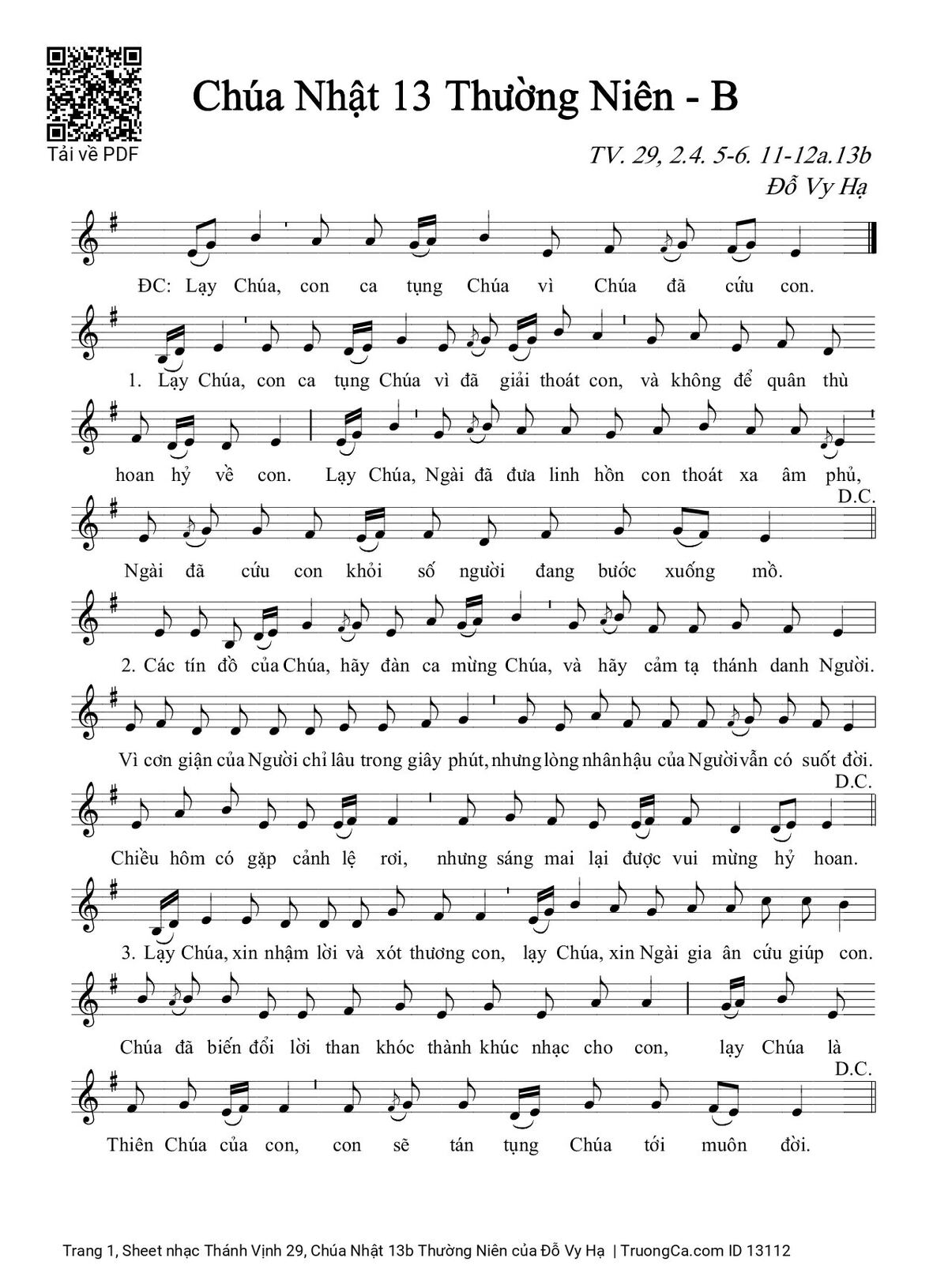 Sheet PDF with the same name Thánh Vịnh 29, Chúa Nhật 13b Thường Niên: