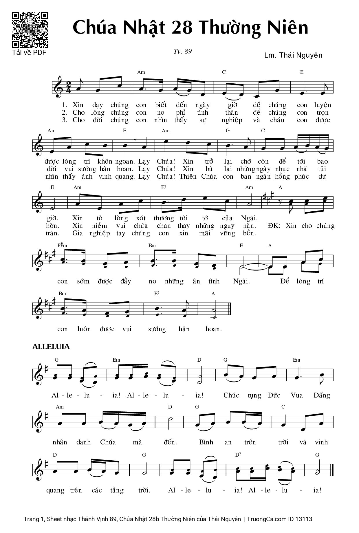 Thái Nguyên Xin dạy chúng con biết đến ngày giờ để chúng con luyện được lòng trí khôn ngoan [PDF] [Sheet] [Lyrics] [Mp4/Midi]