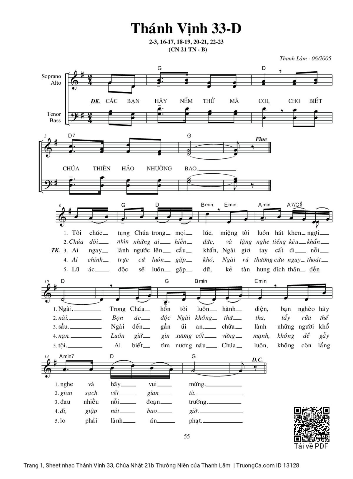 Sheet PDF with the same name Thánh Vịnh 33, Chúa Nhật 21b Thường Niên: