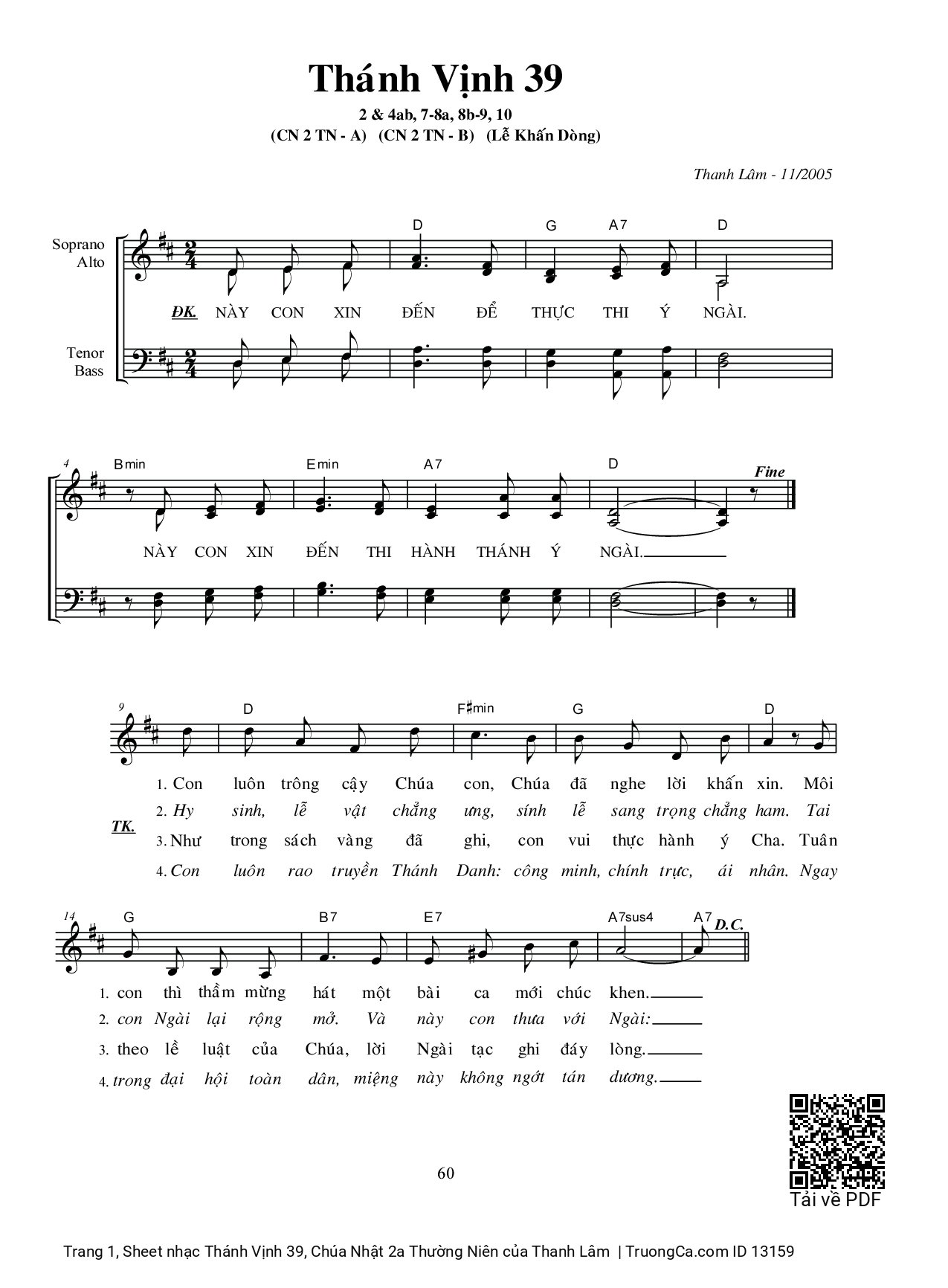 Sheet PDF with the same name Thánh Vịnh 39, Chúa Nhật 2a Thường Niên: