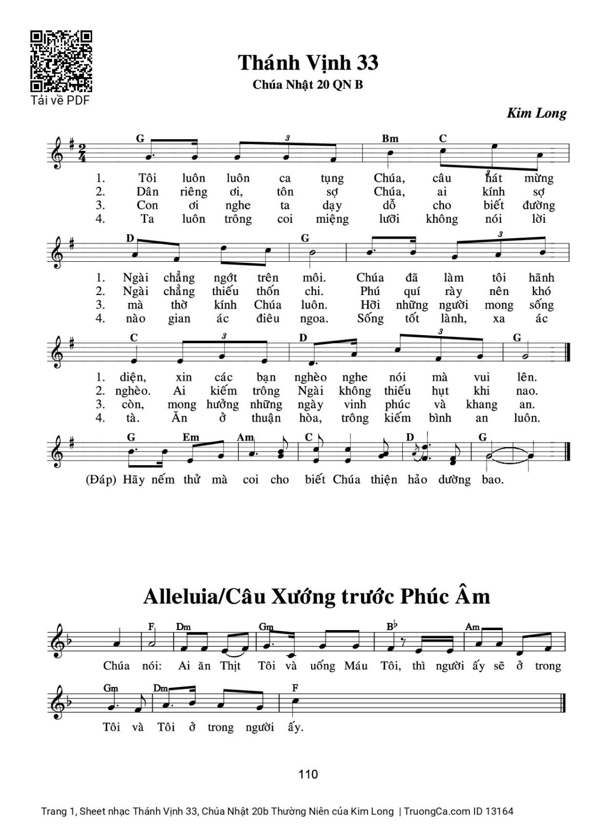More similar sheets PDF Thánh Vịnh 33, Chúa Nhật 20b Thường Niên: