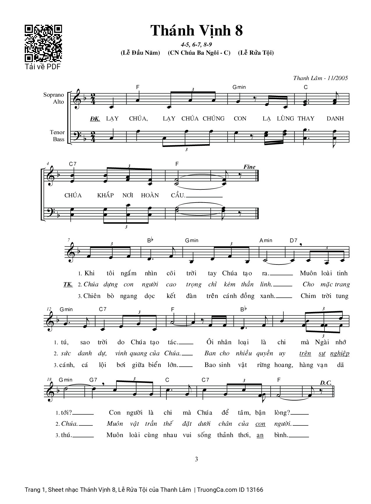 Thanh Lâm Lạy Chúa lạy Chúa chúng con lạ lùng thay Danh Chúa khắp nơi hoàn cầu [PDF] [Sheet] [Lyrics] [Mp4/Midi]