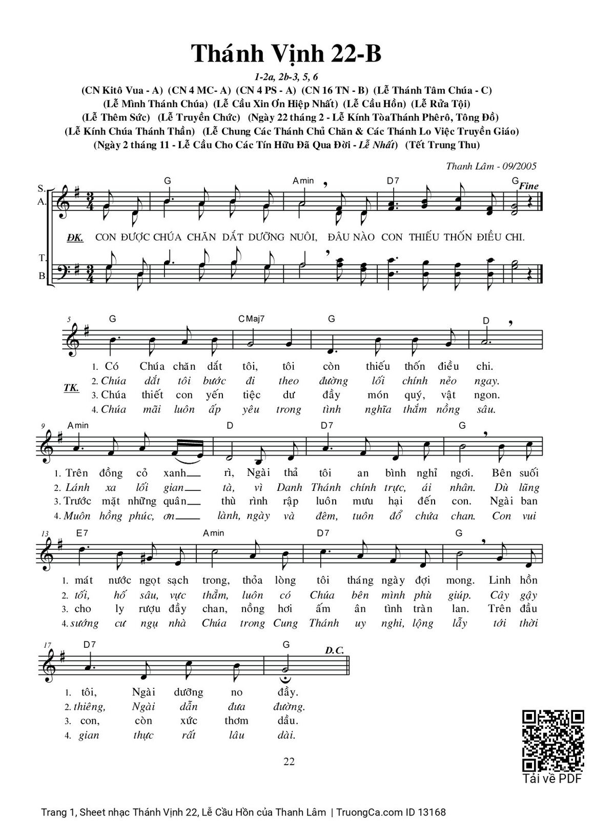 Thanh Lâm Con được Chúa chăn dắt dưỡng nuôi đâu nào con thiếu thốn điều chi [PDF] [Sheet] [Lyrics] [Mp4/Midi]