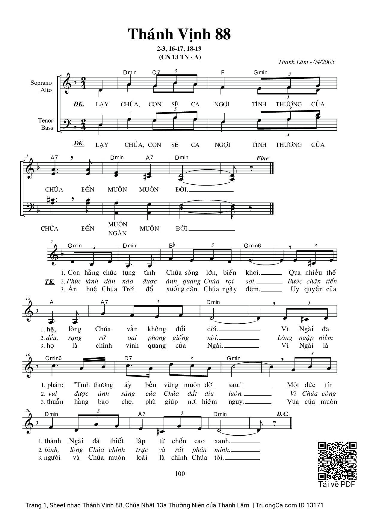 Sheet PDF with the same name Thánh Vịnh 88, Chúa Nhật 13a Thường Niên:
