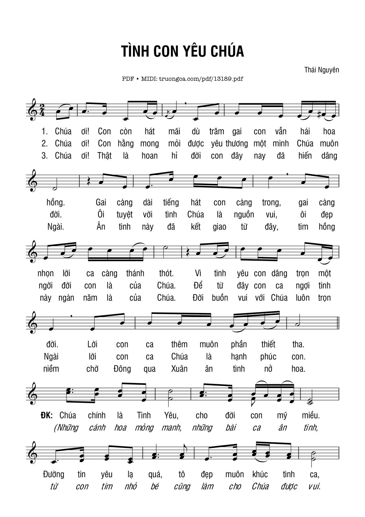 Sheet PDF with the same name Tình Con Yêu Chúa: