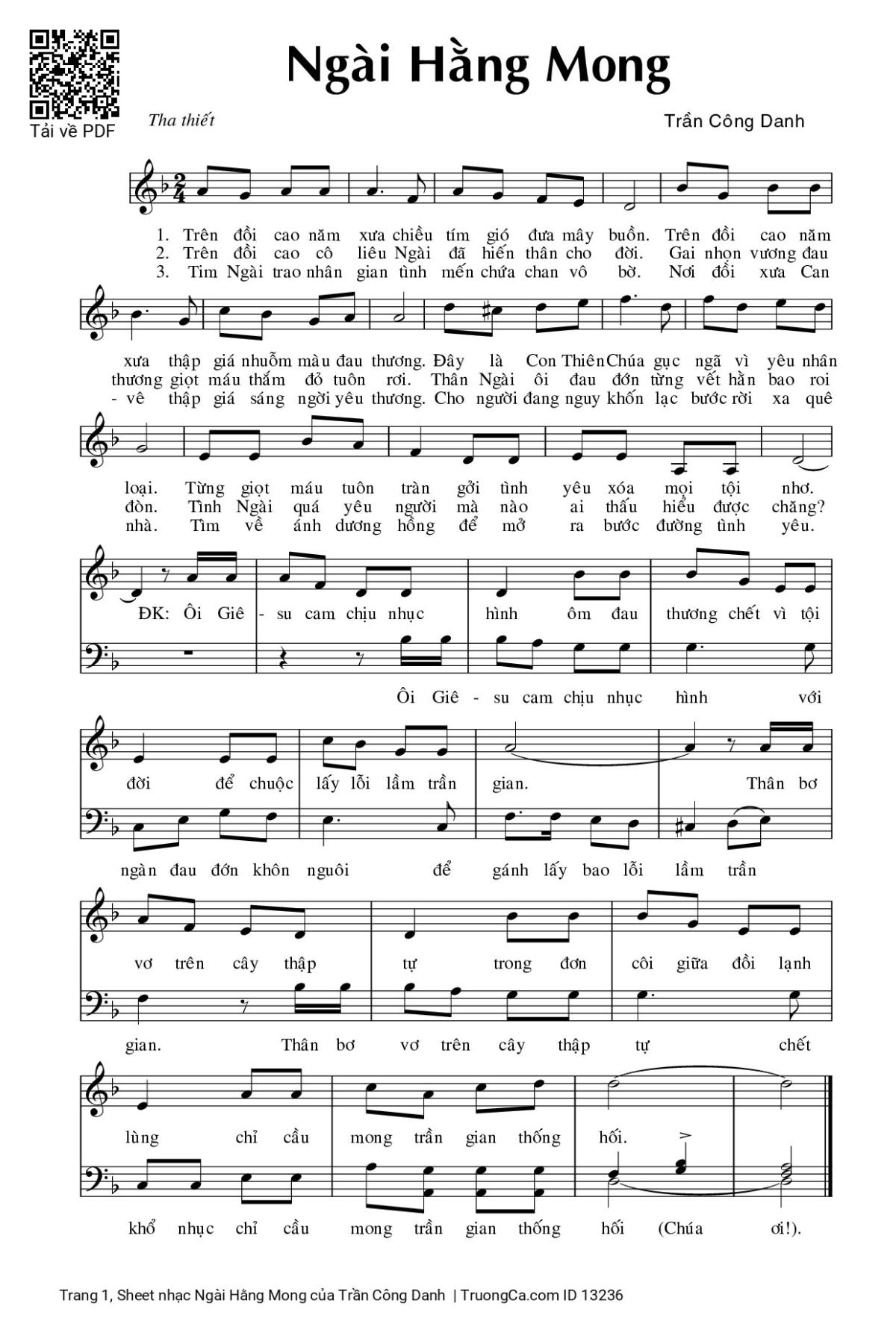 1. Trên đồi cao năm xưa chiều tím gió đưa mây buồn. Trên đồi cao năm xưa thập giá nhuỗm màu đau thương. Đây là Con Thiên Chúa gục ngã vì yêu nhân loại. Từng giọt máu tuôn tràn gởi tình yêu xóa mọi tội nhơ.