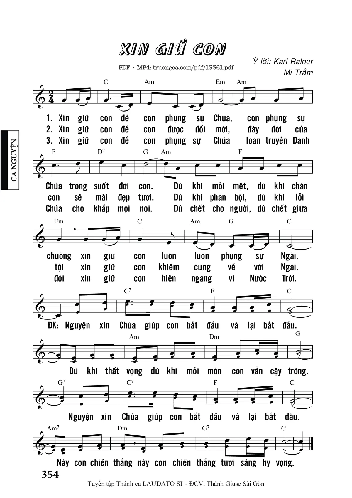 The first sentence: Album Tâm tình hiến dâng Xin giữ con để con phụng sự Chúa