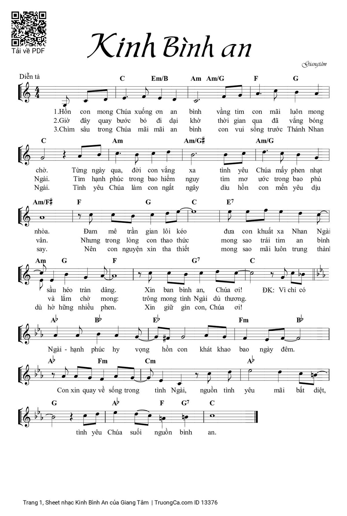 Giang Tâm Hồn con mong Chúa xuống ơn an bình vầng tim con mãi luôn mong chờ [PDF] [Sheet] [Lyrics] [Mp4/Midi]