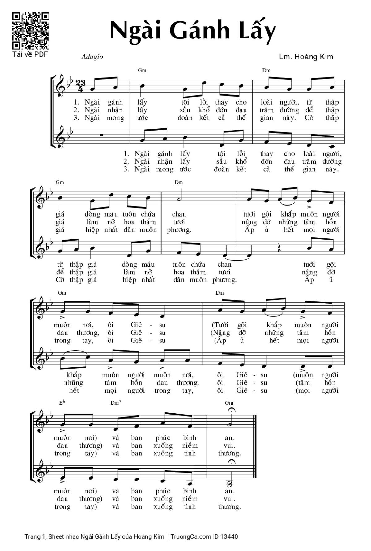Hoàng Kim Ngài gánh lấy tội lỗi thay cho loài người [PDF] [Sheet] [Lyrics] [Mp4/Midi]