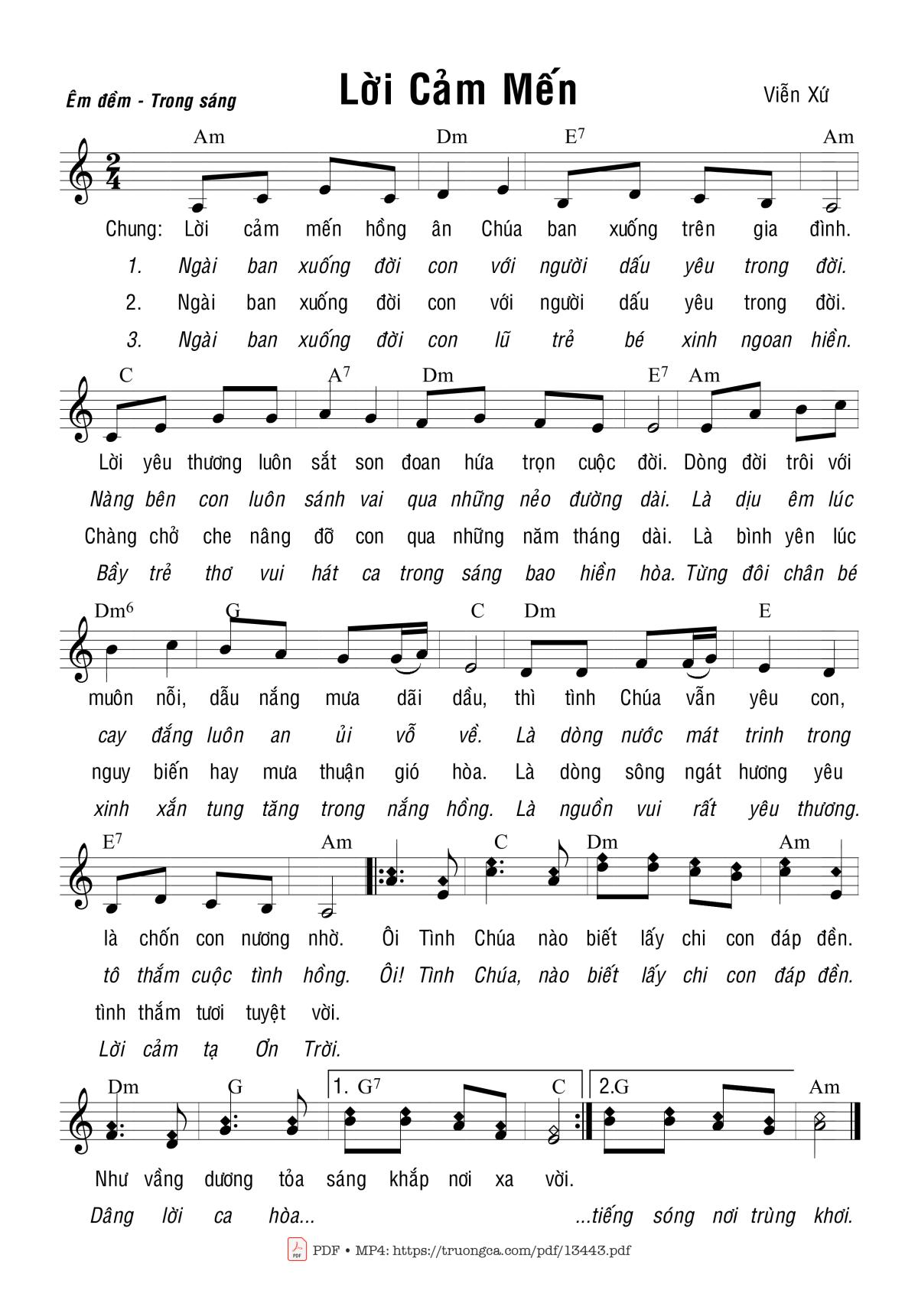 Viễn Xứ Lời cảm mến hồng ân Chúa ban xuống trên gia đình [PDF] [Sheet] [Lyrics] [Mp4/Midi]