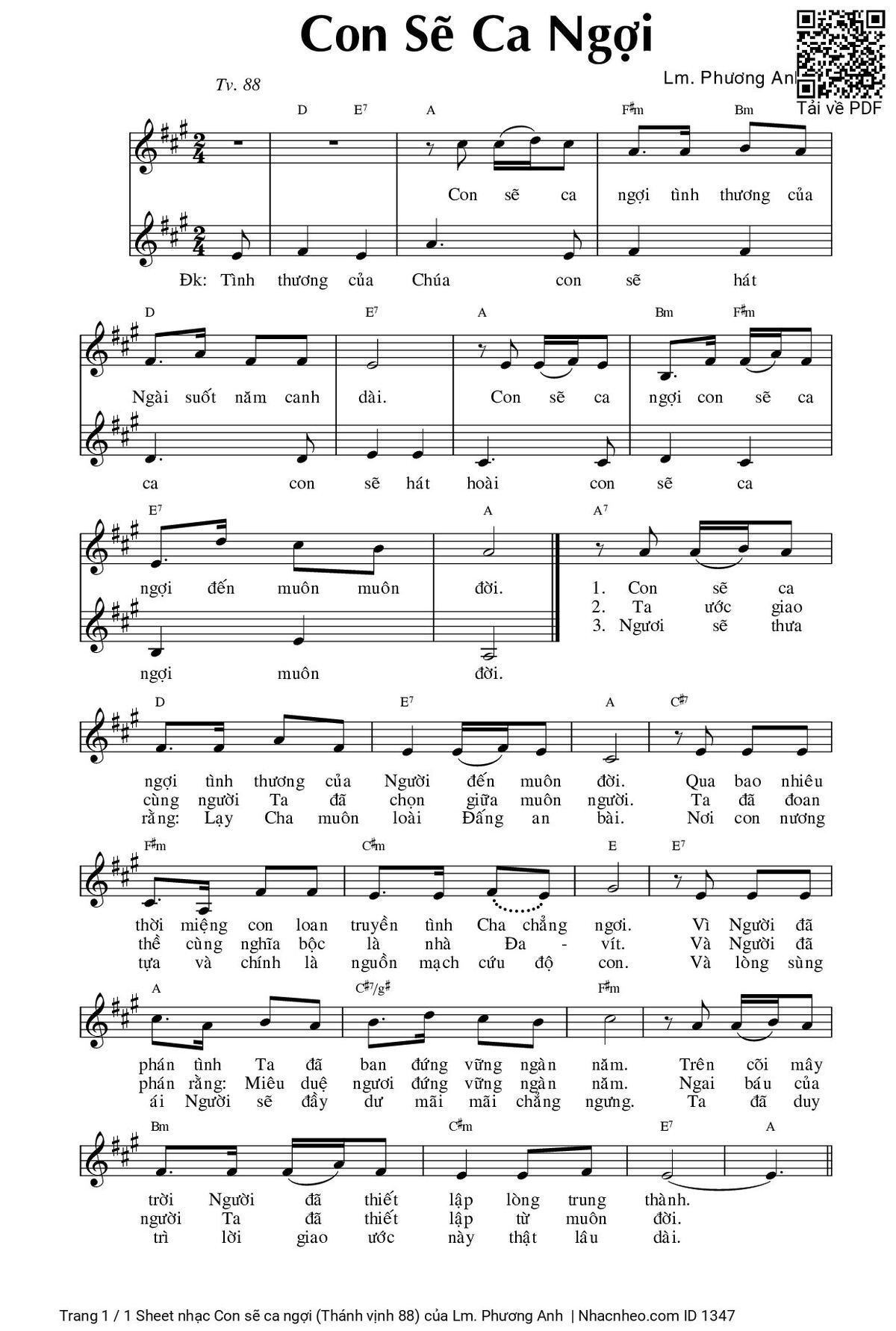 The Videos/audios Con sẽ ca ngợi (Thánh vịnh 88) by Lm. Phương Anh were embed from Youtube, Musescore or the other 3rd links. Videos are subject to 3rd's copyright control and may be removed by YouTube's copyright rules and 3rd's policies or maybe included advertisements. If you cannot access to these songs, this mean that have been removed.