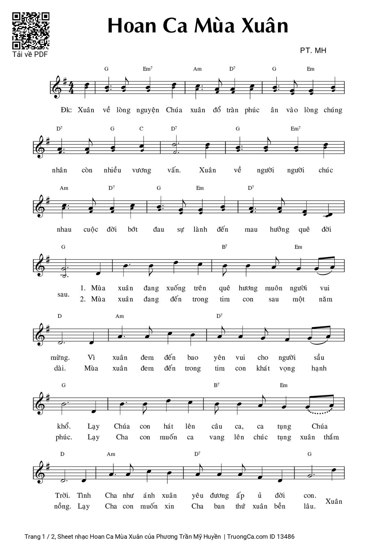 Sheet PDF with the same name Hoan Ca Mùa Xuân: