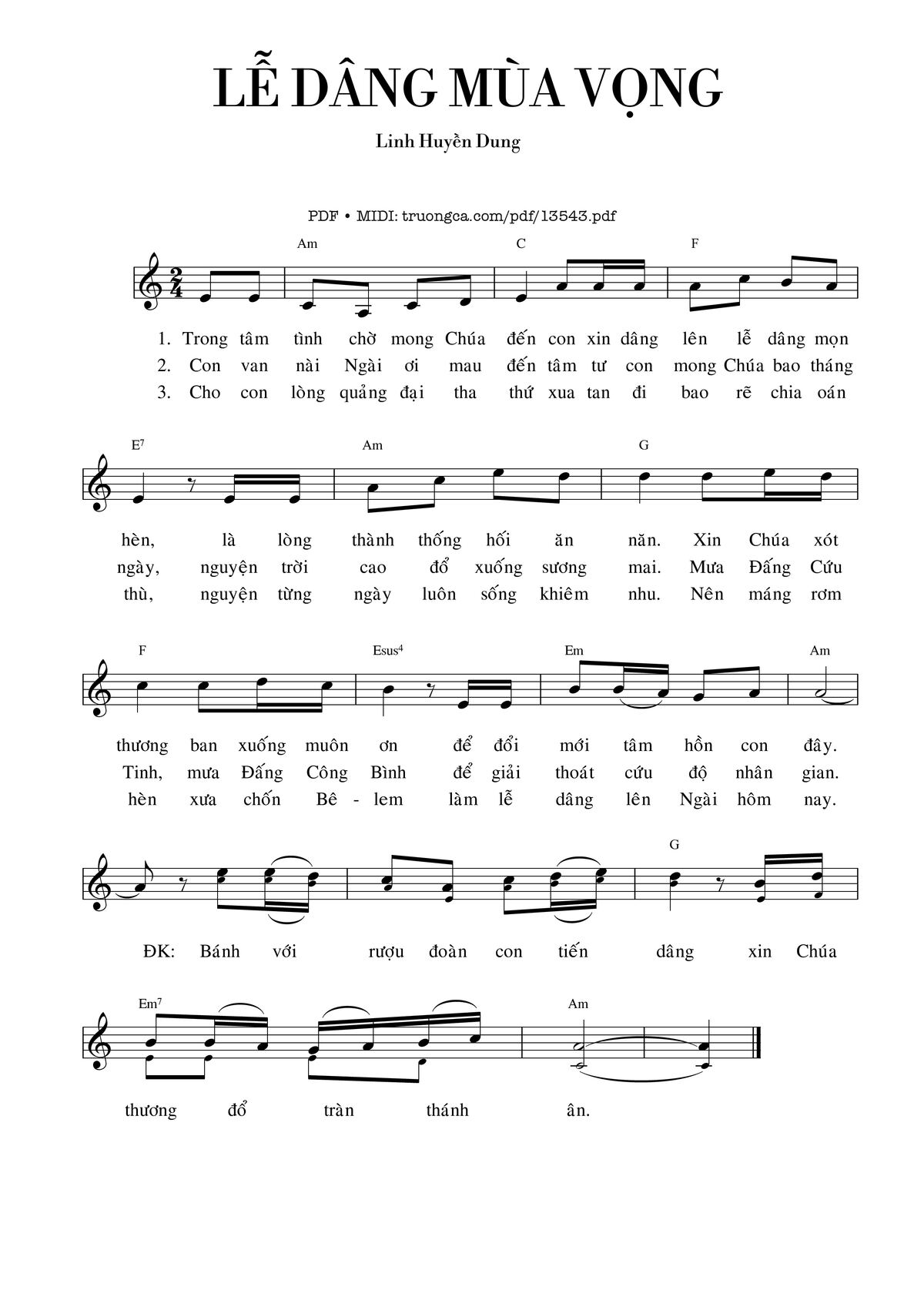 Linh Huyền Dung Thể hiện Ca đoàn Ngôi Ba Trong tâm tình chờ mong Chúa đến con xin dâng lên lễ dâng mọn hèn [PDF] [Sheet] [Lyrics] [Mp4/Midi]