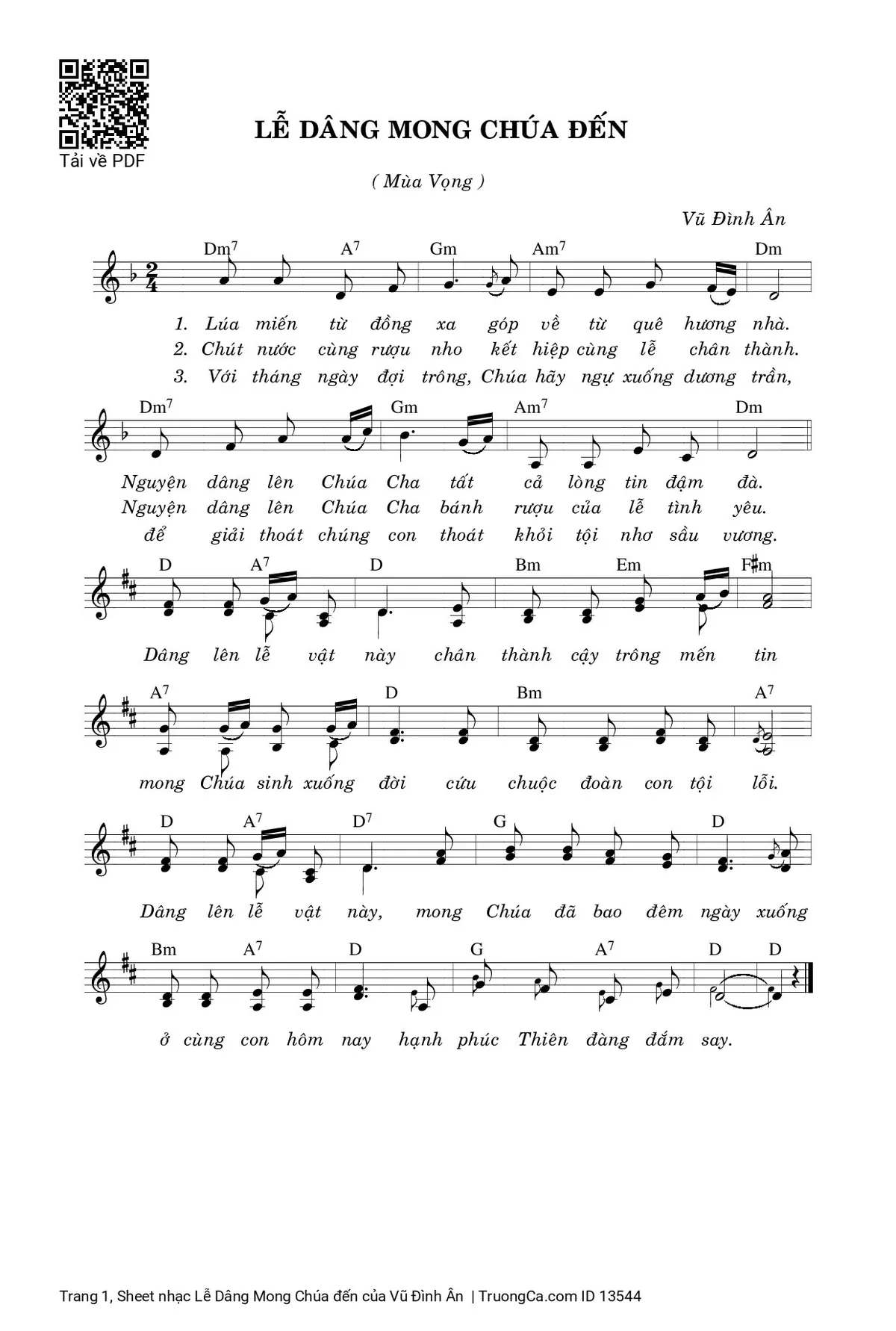 Điệp khúc. Dâng lên lễ vật này chân thành cậy trông mến tin, mong Chúa sinh xuống đời cứu chuộc đoàn con tội lỗi. Dâng lên lễ vật này, mong Chúa đã bao đêm ngày, xuống ở cùng con hôm nay hạnh phúc Thiên Đàng đắm say.