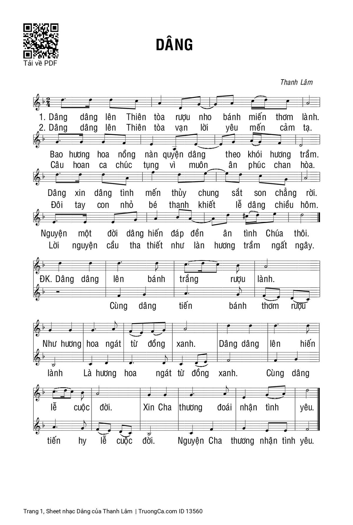 Sheet PDF with the same name Dâng: