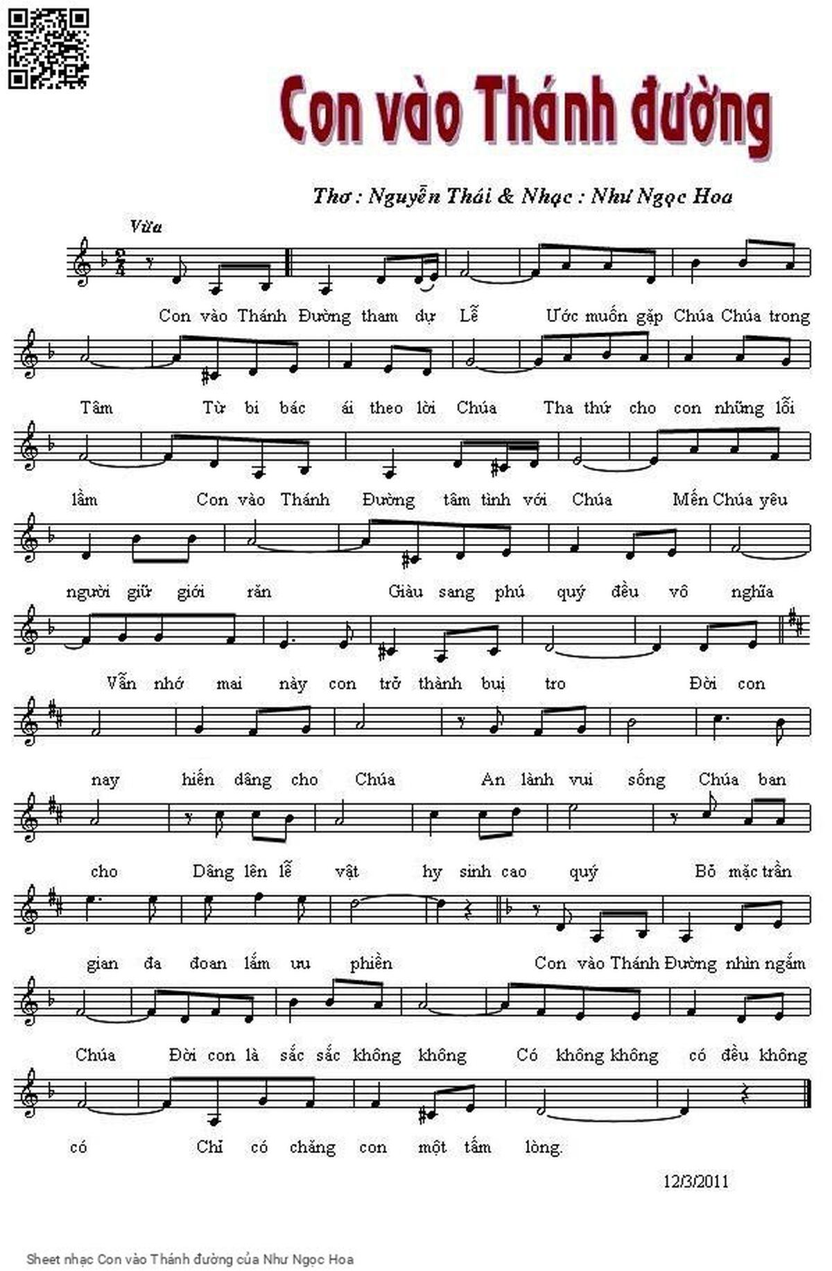 The Videos/audios Con vào Thánh đường by Như Ngọc Hoa were embed from Youtube, Musescore or the other 3rd links. Videos are subject to 3rd's copyright control and may be removed by YouTube's copyright rules and 3rd's policies or maybe included advertisements. If you cannot access to these songs, this mean that have been removed.