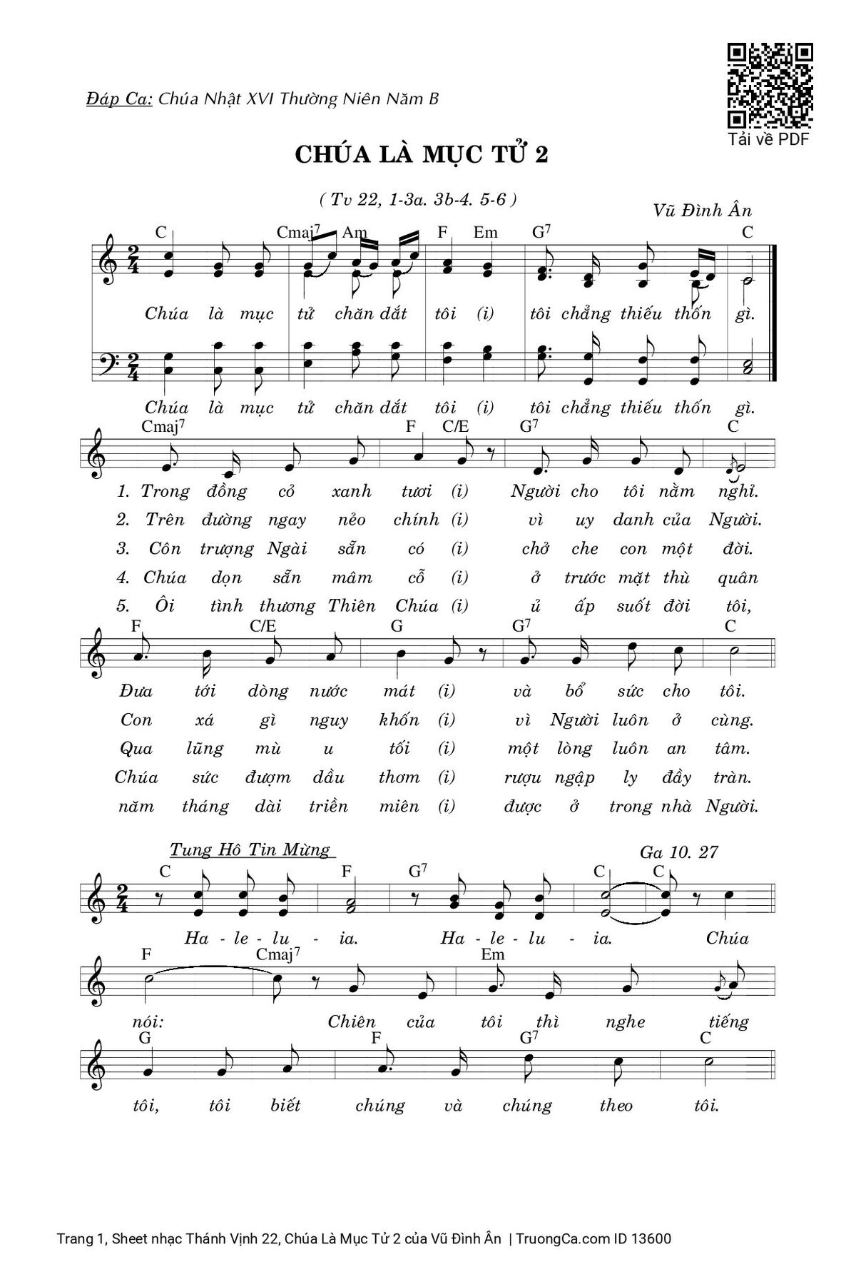 Vũ Đình Ân Ca Chúa Nhật B Thường Niên Chúa là mục tử chăn dắt tôi tôi chẳng thiếu thốn gì [PDF] [Sheet] [Lyrics] [Mp4/Midi]
