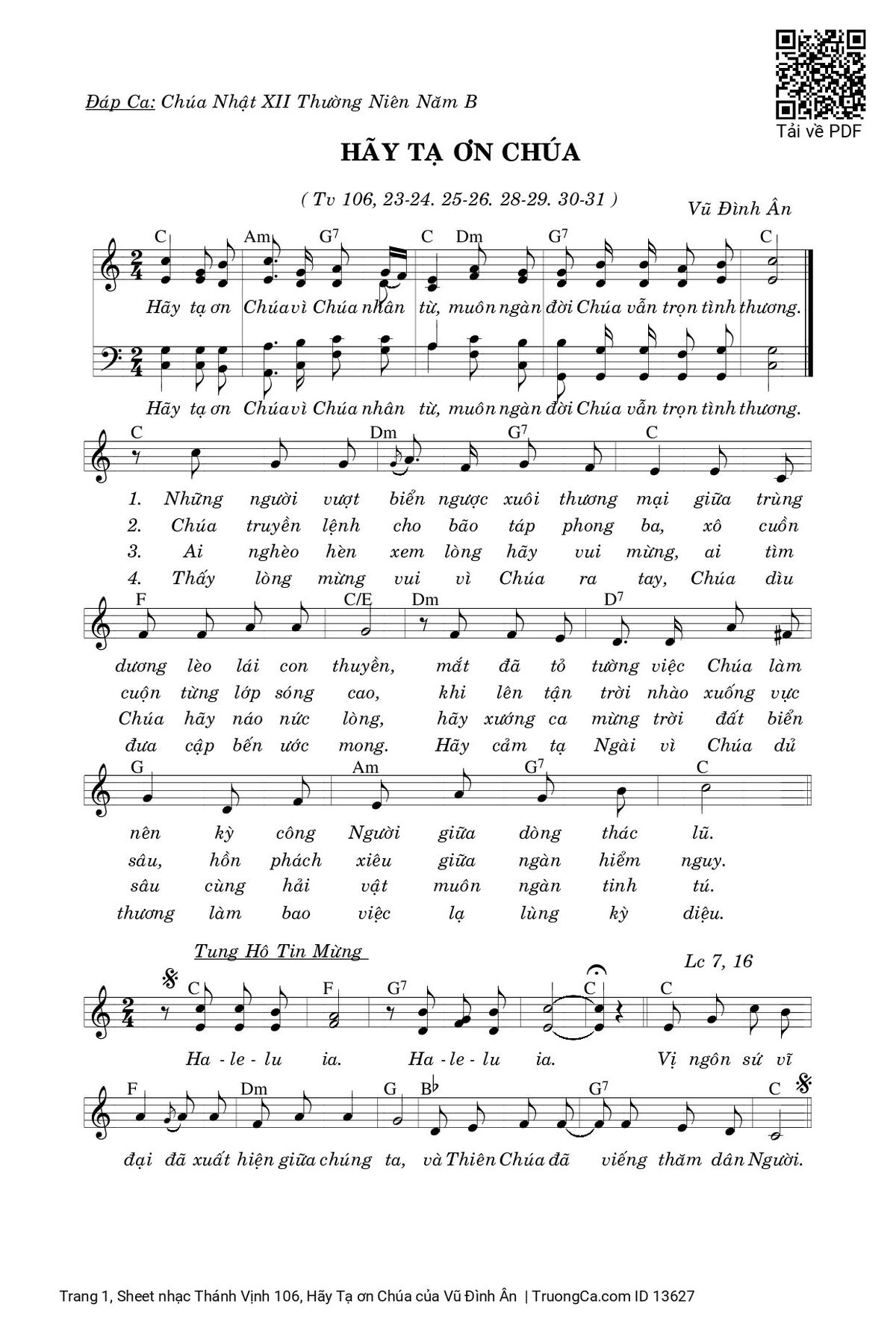 Sheet PDF with the same name Thánh Vịnh 106, Hãy Tạ ơn Chúa:
