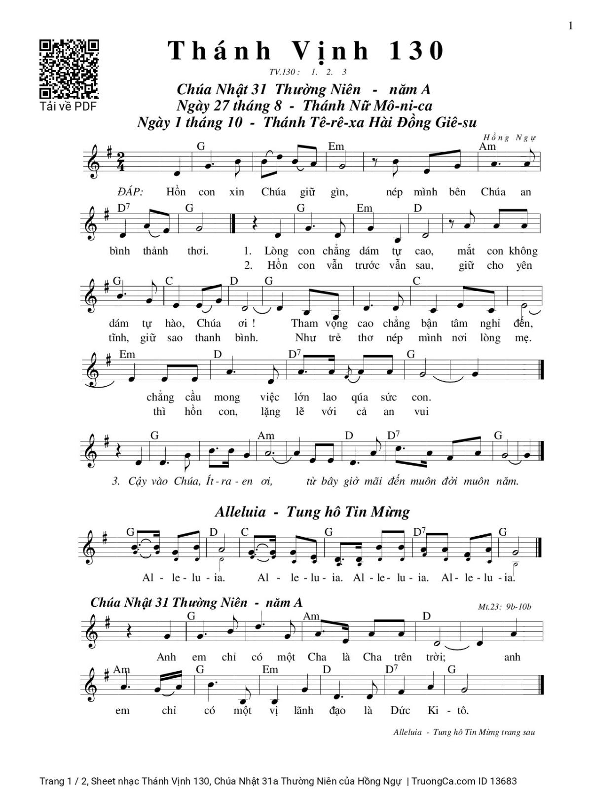 Sheet PDF with the same name Thánh Vịnh 130, Chúa Nhật 31a Thường Niên:
