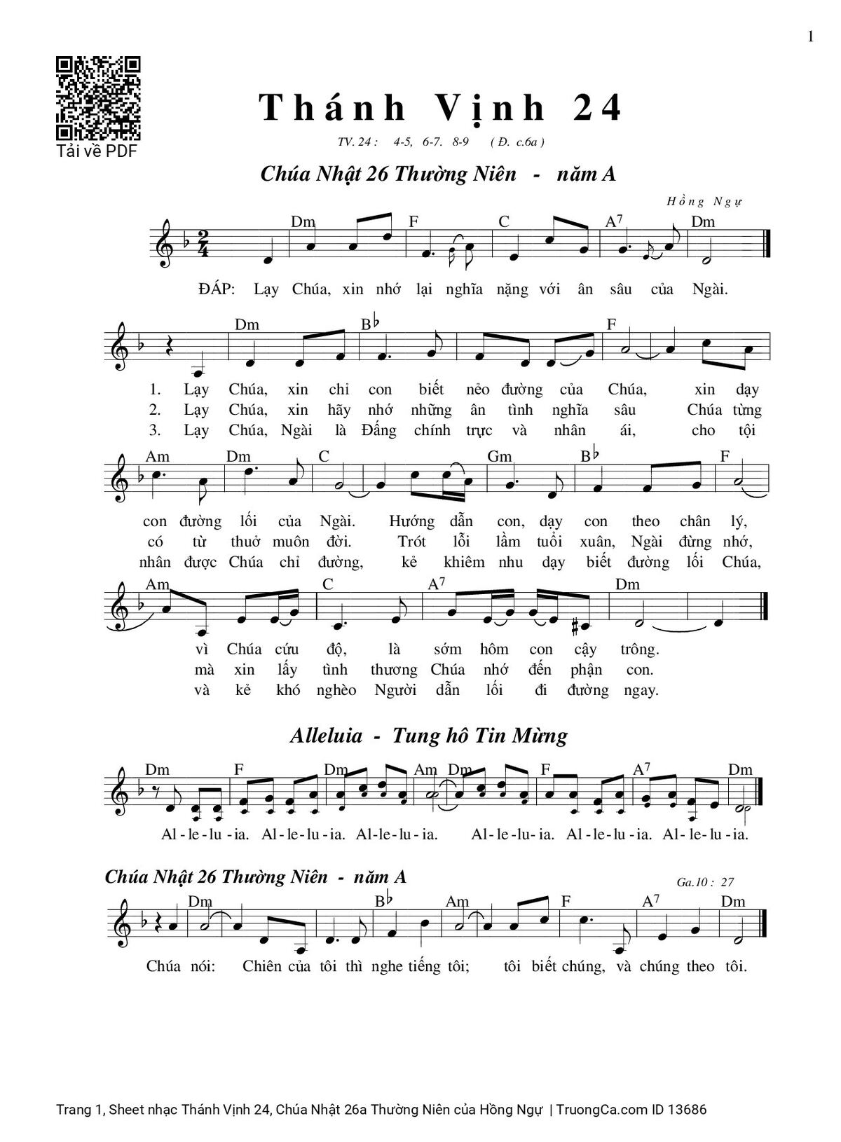 Sheet PDF with the same name Thánh Vịnh 24, Chúa Nhật 26a Thường Niên: