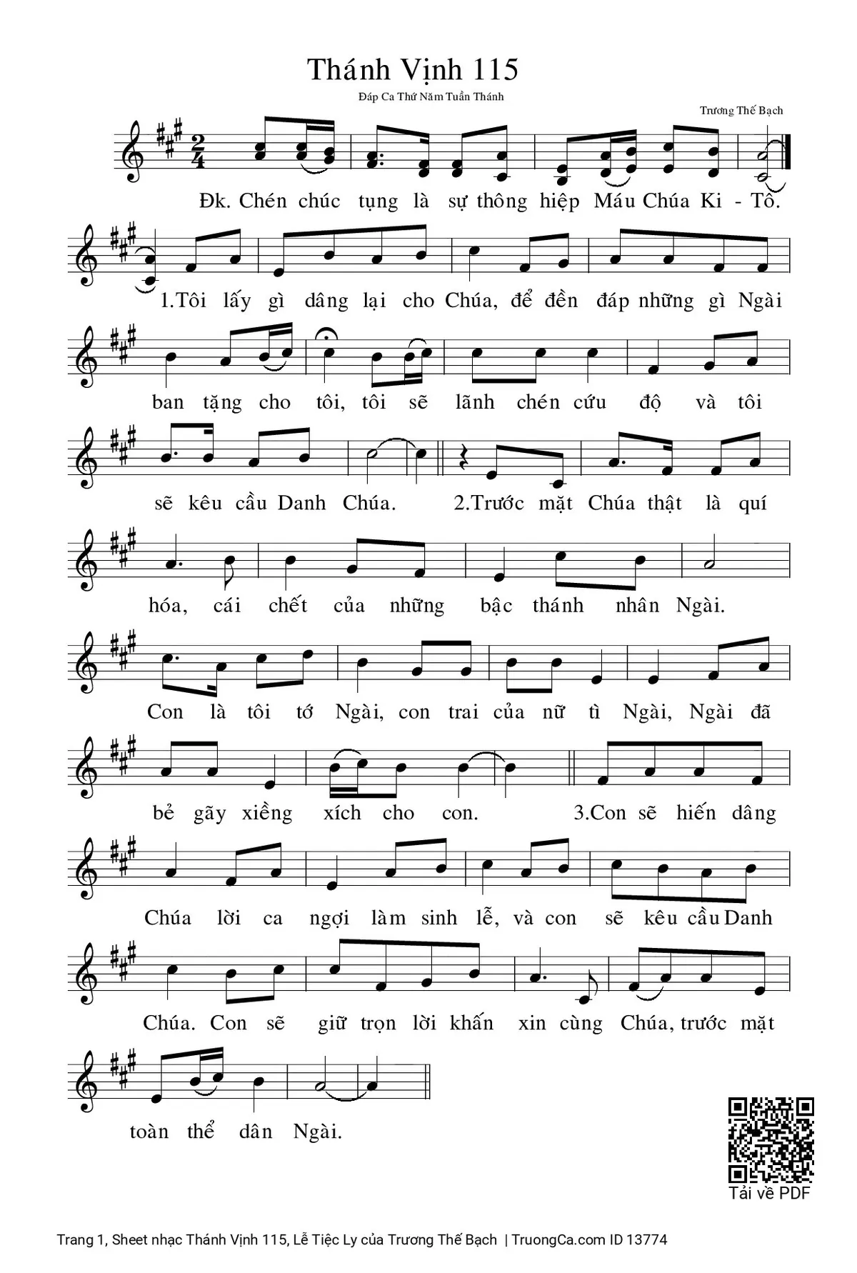 Sheet PDF with the same name Thánh Vịnh 115, Lễ Tiệc Ly: