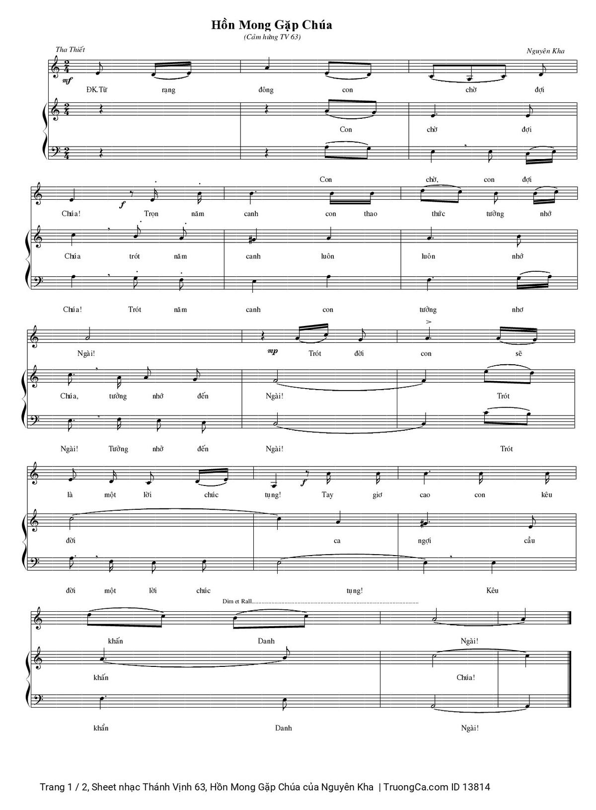 Nguyên Kha Từ rạng đông con chờ đợi Chúa Trọn năm canh con thao thức tưởng nhớ Ngài [PDF] [Sheet] [Lyrics] [Mp4/Midi]