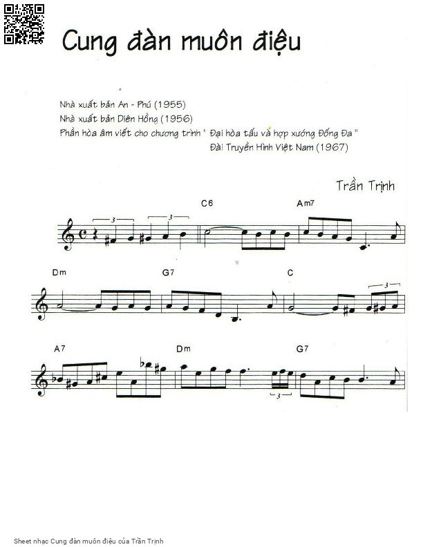 Transposition is the process of moving a song's melody and chords up or down in pitch by a constant interval. The direction of the transposition tool is indicated by a plus (+) sign for up and a minus (-) sign for down. Hover mouse over chords signs to see the chords chart of Cung đàn muôn điệu song.