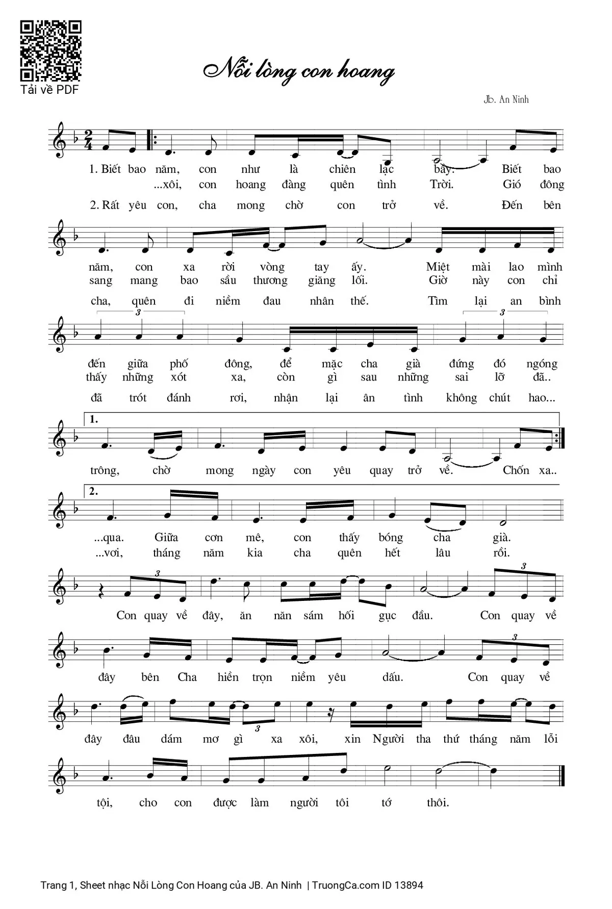 JB. An Ninh Thánh Ca Tin Mừng Biết bao năm con như là chiên lạc bầy [PDF] [Sheet] [Lyrics] [Mp4/Midi]