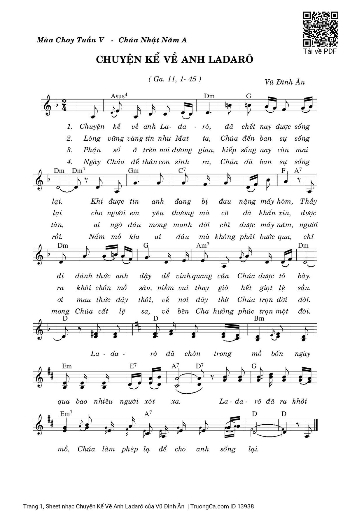 Vũ Đình Ân Hiệp Lễ Chúa Nhật A Mùa Chay Chuyện kể về anh Ladarô [PDF] [Sheet] [Lyrics] [Mp4/Midi]