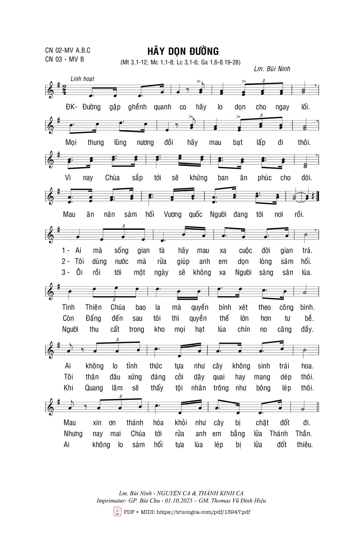 Bùi Ninh Chúa Nhật B Mùa Vọng Thánh Ca Tin Mừng Thể hiện Anh Phan [PDF] [Sheet] [Lyrics] [Mp4/Midi]