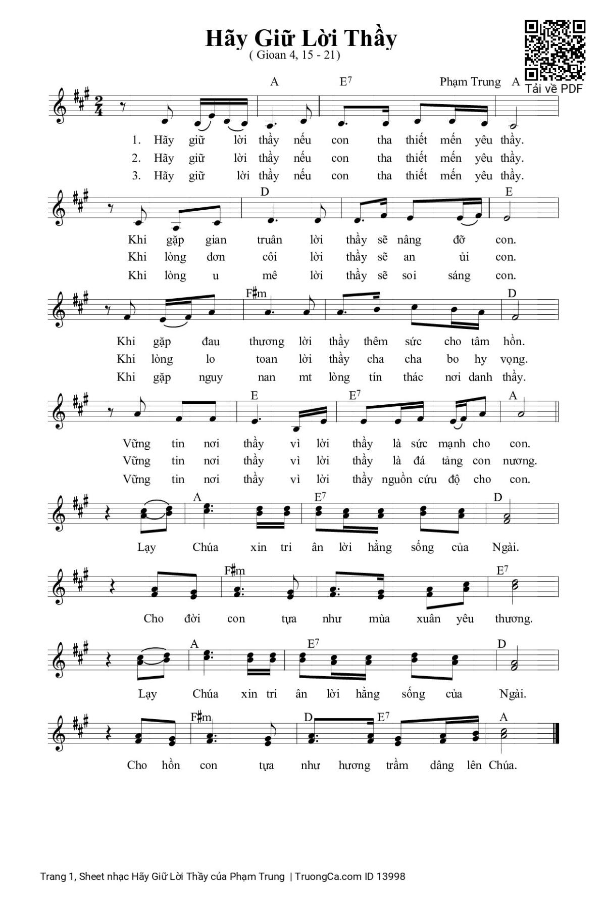 Phạm Trung Hãy giữ lời Thầy nếu con than thiết mến yêu Thầy [PDF] [Sheet] [Lyrics] [Mp4/Midi]