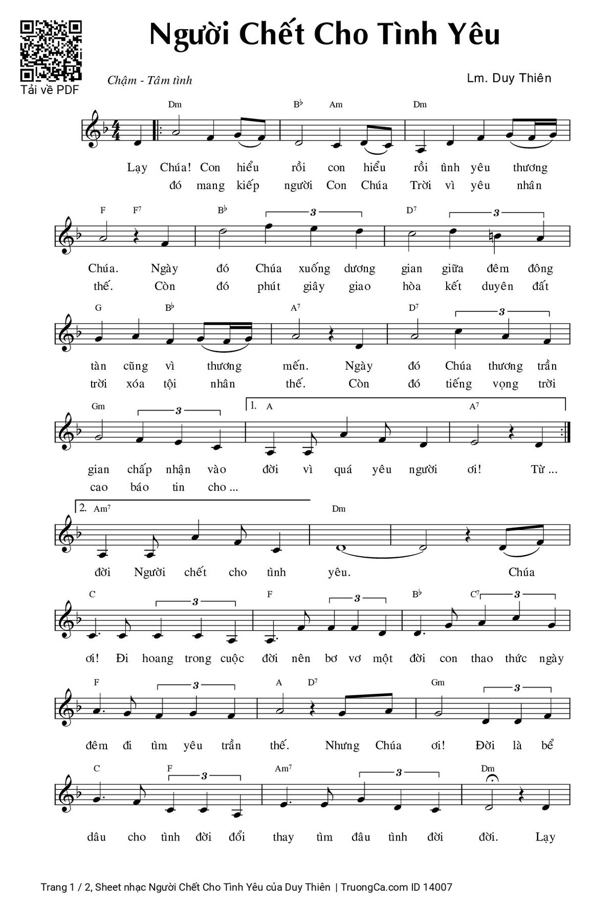Sheet PDF with the same name Người Chết Cho Tình Yêu: