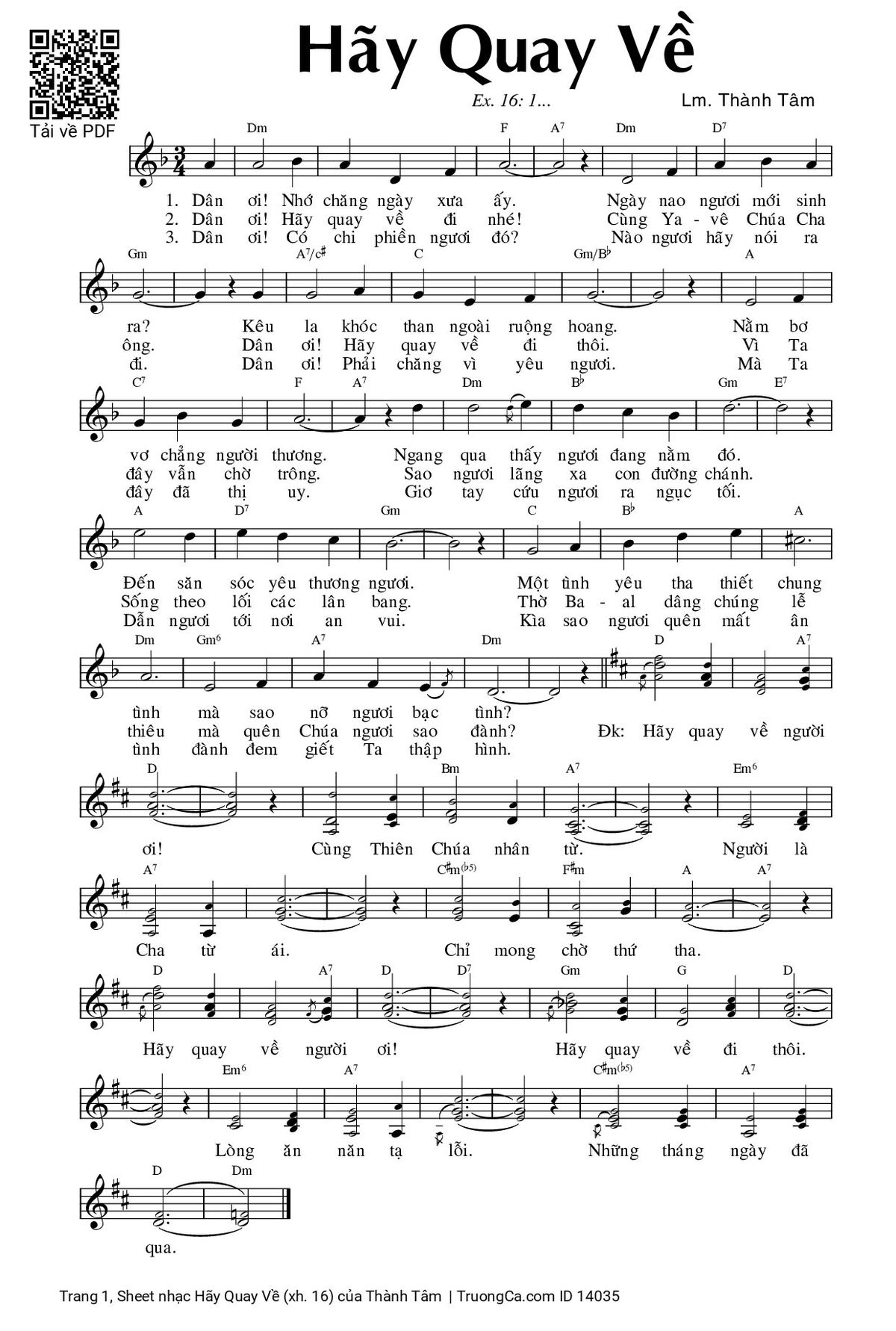 2. Dân ơi! Hãy quay về đi nhé! Cùng Thiên Chúa, Chúa cha ông. Dân ơi! Hãy quay về đi thôi. Vì ta đây vẫn chờ trông. Sao ngươi lãng xa con đường chánh. Sống theo lối các lân bang. Thờ Ba-al dâng chúng lễ thiêu mà quên Chúa ngươi sao đành?