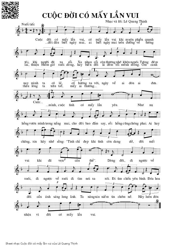 Lê Quang Thịnh Cuộc đời có mấy lần vui Có mấy lần vui khi muộn phiền quanh tôi [PDF] [Sheet] [Lyrics] [Mp4/Midi]