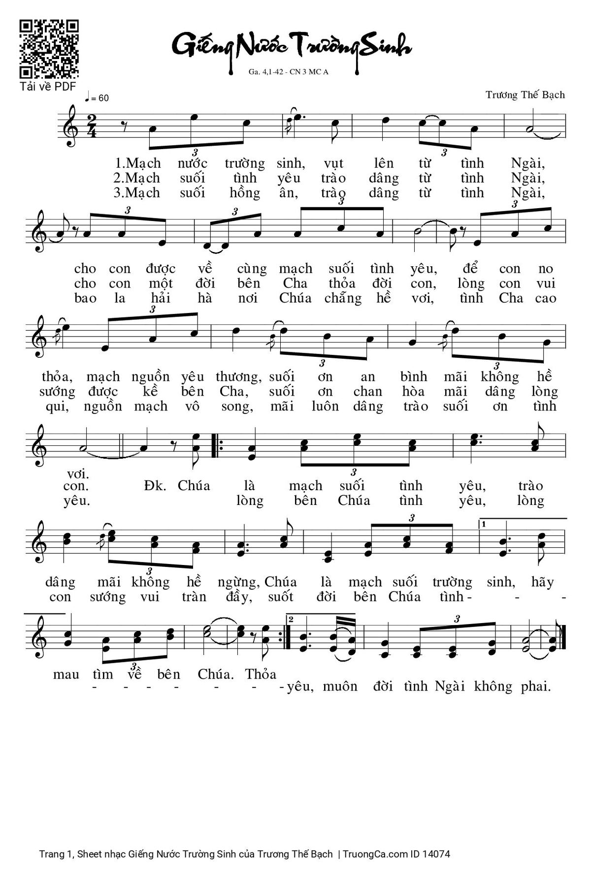 Chúa là mạch suối tình yêu, trào dâng mãi không hề ngừng, Chúa là mạch suối trường sinh, hãy mau tìm về bên Chúa. Thỏa lòng bên Chúa tình yêu, lòng con sướng vui tràn đầy, suốt đời bên Chúa tình yêu, muôn đời tình Ngài không phai.